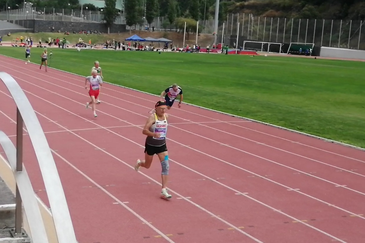 Erna Antritter (TV Biberach) war als einzige W90-Starterin in den Würfen auf Madeira dabei. Umso bemerkenswerter, dass sie den Weg auf sich genommen hatte und immer noch an den Start geht. Insgesamt tat sie dies sieben Mal und wurde mit sieben Goldmedaillen ausgezeichnet. Neben Kugel (4,30 m), Diskus (7,52 m), Speer (7,49 m), Hammer (12,72 m) und Gewicht (4,55 m) sowie Wurf-Fünfkampf (2.206 Pt.) rannte Erna Antritter über 100 Meter 37,66 Sekunden – als erste Über-90-Jährige in Deutschland und somit zu einer neuen Deutschen Bestleistung.
