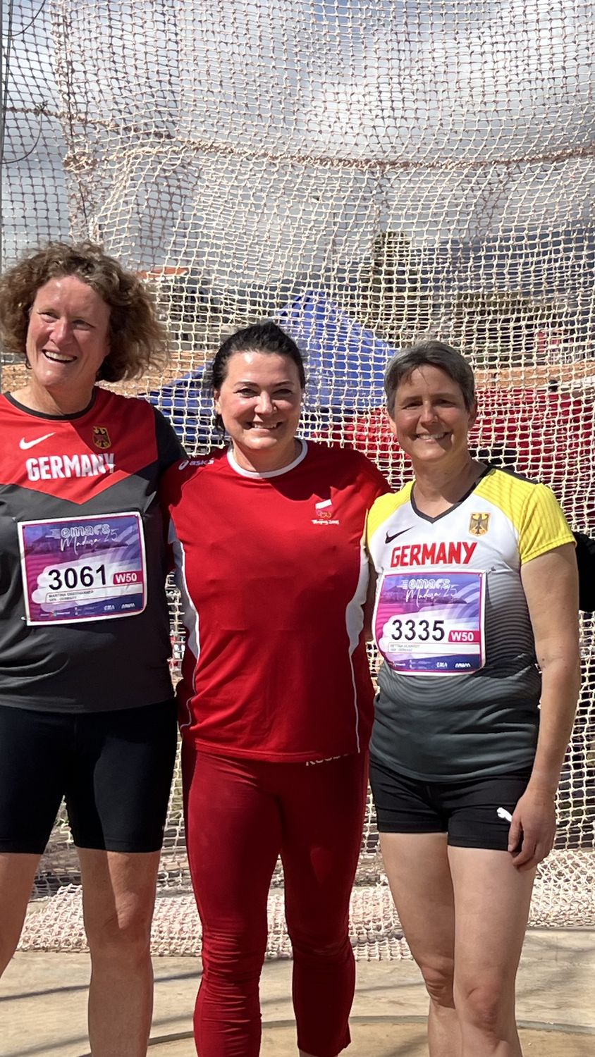 Weitere Titel im Wurfbereich sammelten Bettina Schardt, Paul Emck und Susanne Strohm ein. Susanne Strohm (SV Stuttgarter Kickers) holte mit 30,45 Meter Gold im Speerwurf der W60. Paul Emck (LAV Stadtwerke Tübingen) feierte einen knappen Sieg im Diskuswurf der M55. Mit 42,77 Metern lag er am Ende vorne. Bettina Schardt (MTG Mannheim) wurde nach Silber mit dem Diskus überraschend Europameisterin im Wurf-Fünfkampf der W50. Mit 3621 Punkten verbesserte sie zudem ihren Baden-Württembergischen Rekord um 30 Punkte.