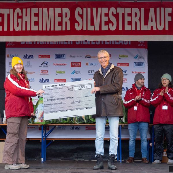 Die frostigen Bedingungen taten der guten Stimmung keinen Abbruch: Rund 12.000 Zuschauer säumten die Laufstrecke. Außerdem Grund zur Freude gab es über eine weitere gute Sache zu Jahresende: Durch die Teilnahme und Spenden der Läuferinnen und Läufer konnte das Orga-Team der Bietigheim- Bissinger Tafel e.V. einen Spendenscheck in Höhe von 7.000 Euro überreichen.